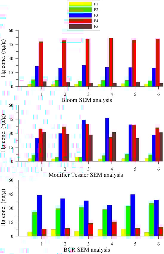 2.3.1. Hg Fractions with the Three SEMs
