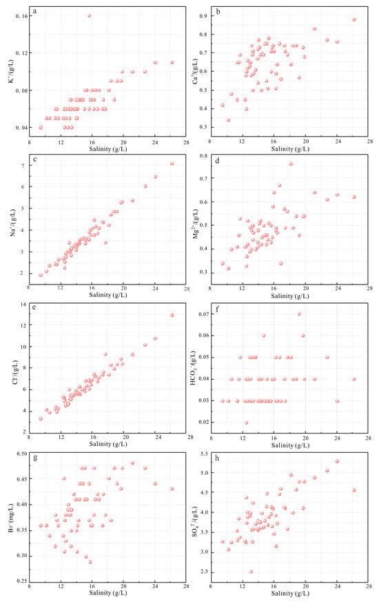 | Sample Number | K+ (g/L) | Na+ (g/L) | Ca2+ (g/L) | Mg2+ (g/L) | Cl− (g/L) | SO42− (g/L) | Br− (mg/L) |