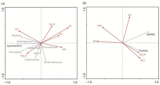 | RDA analysis based on | environmental parameters and phytoplankton groups | environmental parameters and cyanobacteria species | ||