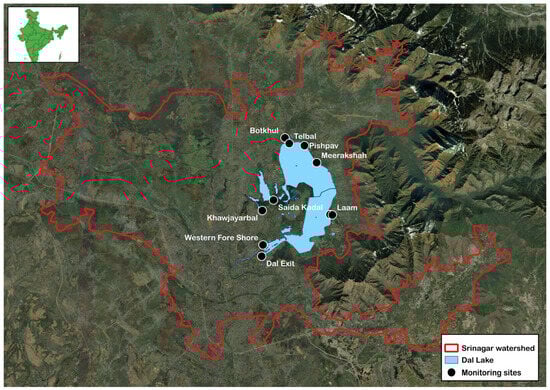 - Kumar, R.; Parvaze, S.; Huda, M.B.; Allaie, S.P. The changing water quality of lakes—A case study of Dal Lake, Kashmir Valley. Environ. Monit. Assess. 2022, 194, 228. [Google Scholar] [CrossRef] [PubMed]