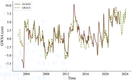 In this study, the GWS from GLDAS-2.2 was selected as the target variable. This dataset has been calibrated using TWS data from GRACE. The validation results show that the NSE between GLDAS and GRACE (CSR GRACE/GRACE-FO RL06.3 Mascon Solutions) for the average GWSA in northeast China is 0.758. These results indicate a good agreement between the GLDAS and GRACE data, suggesting that the GLDAS dataset is reliable for representing groundwater storage changes in the region.