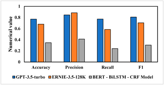 Comparison of BERT-BILSTM-CRF, GPT-3.5-turbo, and ERNIE-3.5-128K models.