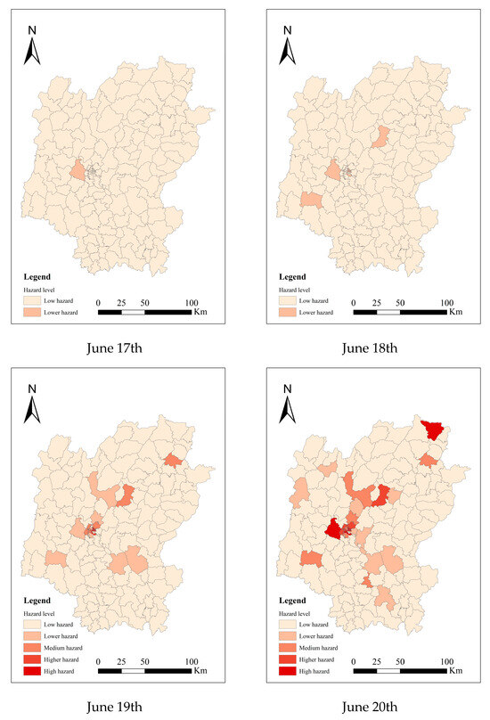 The variations in hazard intensity distributions from 17 June to 21 June.