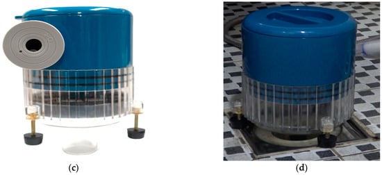 Suspended solid, called SS, was measured before and after passing through the developed laundry filter to confirm the total suspended solid removal rate of the developed filter. SS is used as an indicator to check suspended solids in water [25]. SS was used as an indicator to check how efficient the filter is in removing microplastics and other floating pollutants. The measurement method used was to shake 1 L of laundry discharge water using a glass fiber filter and then filter 250 mL of water using a vacuum pump to check the weight difference in the glass fiber filter before and after the experiment. The difference was confirmed by measuring the laundry discharge water before and after passing through the filter to check the SS removal rate of the laundry wastewater filter. The removal rate was determined in the form of the following formula: