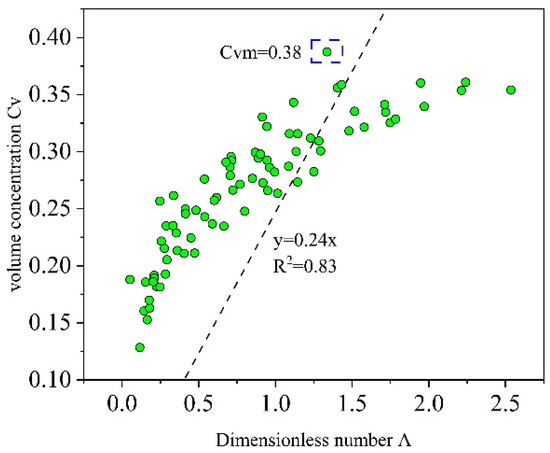 where Cv denotes the volumetric concentration, Cvm represents the concentration at the maximum volume, and the product of Cvm and k denotes the fraction of the stream power needed to maintain suspended sediment at its transport limit at low stream power [45].