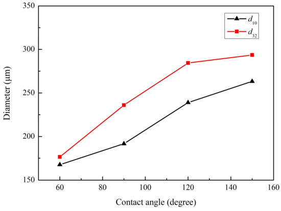 Evolution of mean droplet diameter (μm) along with contact angle.