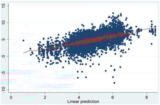 Also, the data were subjected to a normality test appropriate for large datasets—the Shapiro–Wilk test—to ascertain the distribution characteristics of the variables. Kurtosis and skewness assessments provided further insights into distribution symmetry and tail behavior. Heteroskedasticity was tentatively evaluated using the Breusch–Pagan and White tests within an OLS model as a preliminary step, since these tests are not applicable directly to quantile regression. For the quantile regression model itself, heteroskedasticity was assessed by examining the scatter plot of residuals versus fitted values. Multicollinearity was initially assessed using Variance Inflation Factor (VIF) analysis within an OLS framework, as direct multicollinearity tests for quantile regression are not standard. Additionally, correlation matrices and pairwise correlations were employed to further investigate the relationships between variables for the quantile regression model. The model’s fit and the assumption of independent errors were examined through quantile–quantile (Q-Q) plots and residual scatter plots.