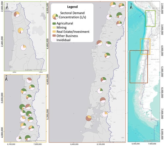 Geographic distribution of water rights concentration of sectoral demand.
