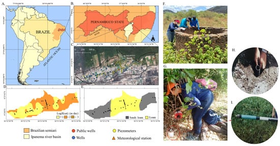 - Fontes Júnior, R.V.P.; Montenegro, A.A.A.; Montenegro, S.M.G.L.; Santos, T.E.M. Estabilidade Temporal da Potenciometria e da Salinidade em Vale Aluvial no Semiárido de Pernambuco. Rev. Bras. De Eng. Agrícola E Ambient. 2012, 16, 1188–1197. [Google Scholar] [CrossRef]