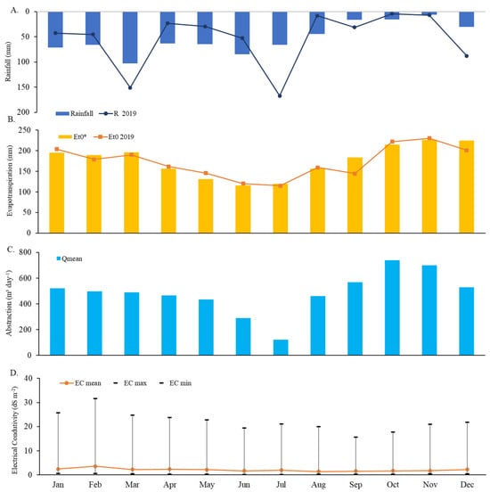 - Tomaz, A.; Palma, P.; Fialho, S.; Lima, A.; Alvarenga, P.; Potes, M.; Salgado, R. Spatial and Temporal Dynamics of Irrigation Water Quality under Drought Conditions in a Large Reservoir in Southern Portugal. Environ. Monit. Assess. 2020, 192, 93. [Google Scholar] [CrossRef]