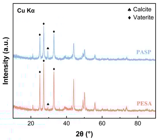 The XRD spectra of calcium carbonate scale samples obtained after adding the two green polymer scale inhibitors are shown in Figure 6, with a dosage of 100 mg/L for both inhibitors. In the XRD patterns of the two calcium carbonate scale samples, the peak intensity corresponding to the calcite crystal phase is relatively weakened, particularly in the calcium carbonate scale sample obtained after adding PESA, where the calcite crystal phase is nearly absent. This indicates that both green polymer scale inhibitors exhibit a scale inhibition mechanism similar to AS-582, namely the lattice distortion mechanism. By mixing these three inhibitors, it is expected to produce a synergistic effect to achieve better scale inhibition while reducing phosphorus content in water.