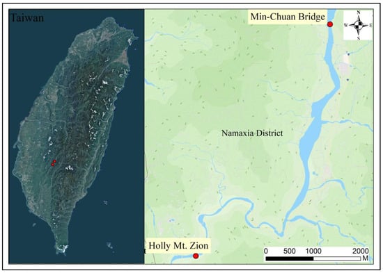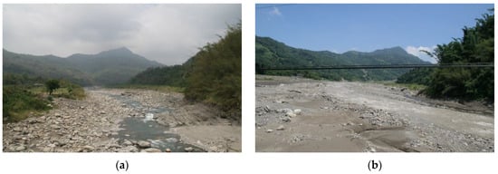 57]. The results show that the mean flow velocity and mean water depth were generally higher before typhoons, with the exception of mean flow velocity at Min-Chuan Bridge (