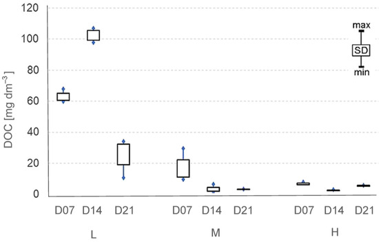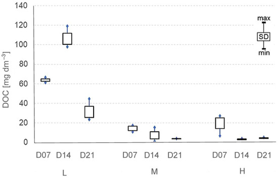 - Dissolved organic carbon concentration at the end of the experiment was the highest in tanks with the lowest light intensity and where the growth of Lemna minor was weaker. In reverse, low DOC values at medium and high light corresponded to higher values of this duckweed biomass there. This may suggest that light intensity played a positive role in a process of organic matter removal by Lemna minor.