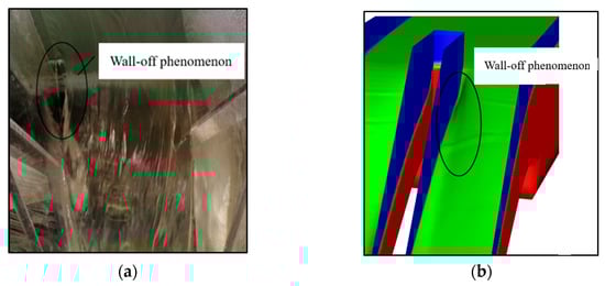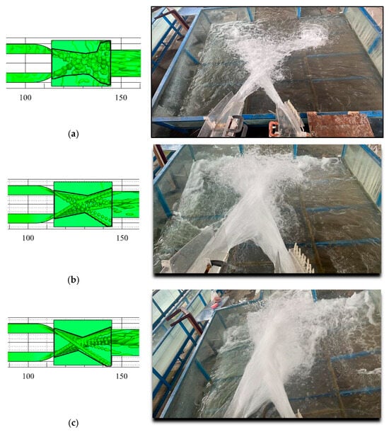 Figure 13. Numerical simulations were performed for the three operating conditions of the recommended scheme and compared with the water tongue in the physical model (