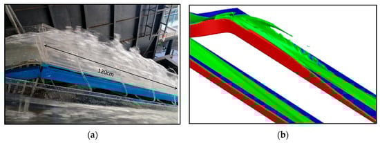 As the water flows through the discharge chute into the downstream stilling basin, air entrainment occurs within both the chute and the stilling basin, resulting in a highly aerated flow. This process represents a typical water–air two-phase flow. For simulating flow field interfaces, the volume of fluid (VOF) method [