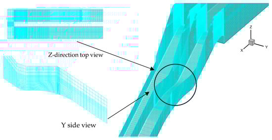 Figure 6). The flow field calculation under the check flood level was carried out via a three-dimensional numerical simulation.