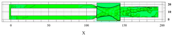 20], based on the volume fraction approach, has been widely adopted in current research. The core concept of the VOF model is to divide the fluid into numerous small cells, with each cell assigned a volume fraction to represent the proportion of fluid it occupies. At the interface between two fluids, a change in the volume fraction within certain cells indicates that the interface has either moved or deformed within those cells. The VOF model employs a series of techniques to track and reconstruct the fluid interfaces. The dynamic evolution of the interface is achieved by solving the transport equation for the volume fraction. The interface reconstruction process aims to accurately determine the interface’s position and shape based on the volume fraction distribution.