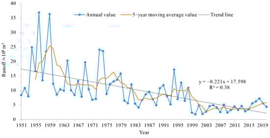 3, accounting for 3.01% of the annual runoff. The trend of runoff changes from 1951 to 2020, as shown in