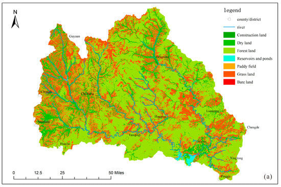 Table 3). In the catchment area of Miyun Reservoir, the areas of forest land and construction land have increased, while the areas of cultivated land and grassland have decreased. Among them, from 1980 to 2020, the forest land area increased by 109.41 km