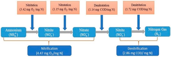 45]. The nitrification process is generally catalyzed by autotrophic microorganisms under aerobic conditions, while the denitrification process can be catalyzed by either autotrophic or heterotrophic microorganisms under anoxic conditions [