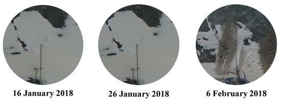 Snow cover area within the effective radius (3 m) of the pyranometer on 16 January, 26 January, and 6 February 2018.