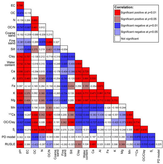 - Khodadadi, M.; Meusburger, K.; Mirzaei, M.; Strauss, P.; Blake, W.H.; Moghaseh, E.; Alewell, C. Spatial Cross-Correlation of Surface Soil Physicochemical Properties with Soil Erosion Estimated by Fallout Radionuclides in Croplands in a Semi-Humid Region of Iran. Catena 2024, 237, 107836. [Google Scholar] [CrossRef]