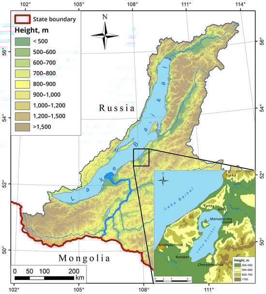 - Bathymetry of Natural Lakes in Russia. MapGraphica. Available online: http://lakemaps.org/ru/atlas_maps.asp?name=Buryatia&geotype=rp&local=Pecпyбликa%20Бypятия (accessed on 1 November 2024).