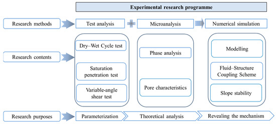 - With the rainfall cycles, changes occur in the pores and the morphology, size, and distribution of mineral particles within the rock. These changes lead to the softening of mudstone limestone and a decrease in its mechanical strength. The alteration of the permeability coefficient causes the wetting front to continually penetrate deeper, enlarging the transient saturated area of the slope while reducing the unsaturated area. The increase in water content also leads to a decrease in matrix suction. Ultimately, under the dual influence of the mechanical and seepage fields, the stability of the slope is reduced.