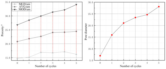 Effect of the number of wet and dry cycles on porosity and pore diameter.