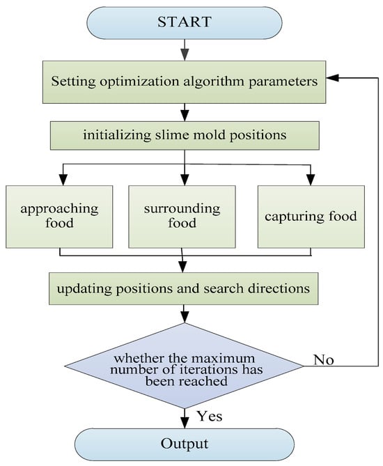 Inspired by the foraging behavior of slime molds, the Slime Mold Algorithm (SMA) is a heuristic optimization algorithm. Shimin et al. [34] summarized this behavior into three stages: food seeking, food approach, and food capture. Slime molds develop a gradually expanding fan shape and extend tentacle-like structures during the foraging process. After several rounds of development, an interconnected vein-like structure is finally formed, which allows for a comprehensive search for food.