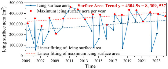Using remote sensing image data from 2005 to 2024, we extracted the maximum annual icing surface area, analyzed the effects of temperature, precipitation, and freezing duration on icing formation, and reached the following conclusions: