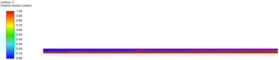 In light of the deposition situations in Conditions 3.1 and 3.2, the distribution of the boundary layer under these flow conditions was computed separately. Since the focus is more on the movement relationship between the water and air phases, the VOF model was employed for the simulation, with the water–air distribution shown in Figure 9.