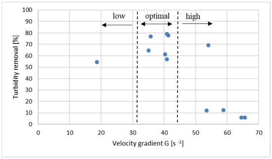 3.4.2. Turbidity Removal vs. Velocity Gradient