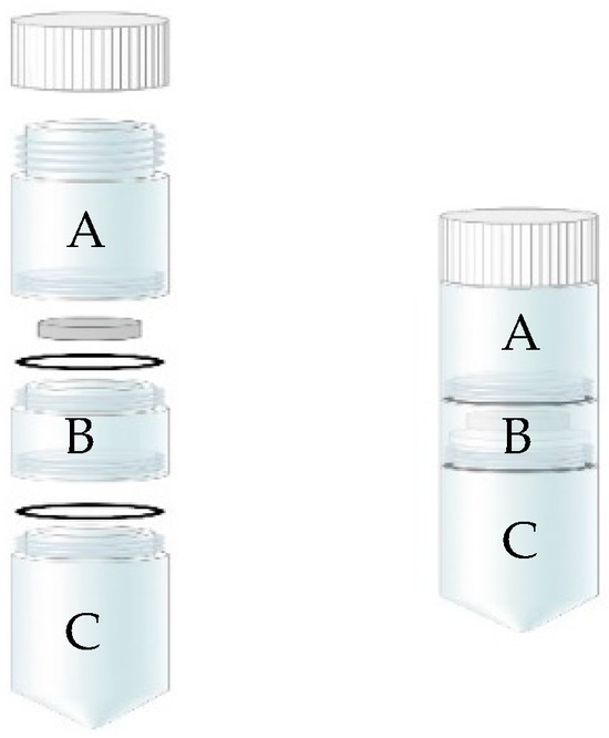 Figure 1), was developed using a laboratory centrifuge with a maximum speed of 4000 rpm. The centrifugal tube device had three sections: Section A for the sample injection; Section B, which used a filter pore and filter cloth to collect solids; and Section C for collecting the centrifuged liquid.