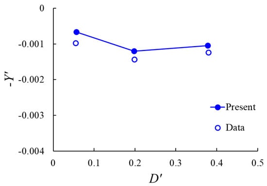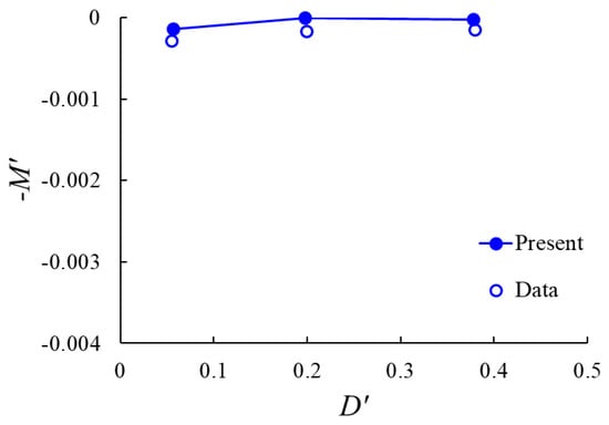 Furthermore, the pitch moment () was analyzed in comparison with model test results. The non-dimensional pitch moment () is defined as follows []: