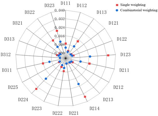 - Using game theory to merge subjective and objective weights, it is shown that fusion weights can combine the advantages of subjective and objective weights and express the information of two single weights at the same time, which makes the results of the fusion weights more reliable. The variation coefficient of combined weights is always smaller than that of single weights, which greatly reduces the dispersion of single weights and makes the weight coefficients more concentrated. Therefore, the results of the fusion weights are more reliable.