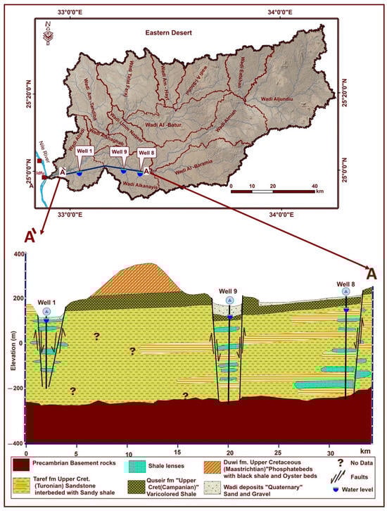 Hydrogeological cross-section (A–A′) of the Nubia Sandstone aquifer at the study area.