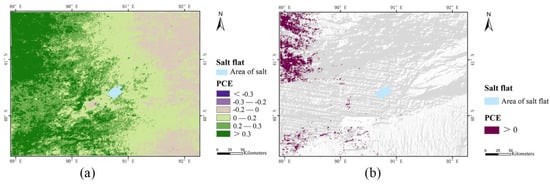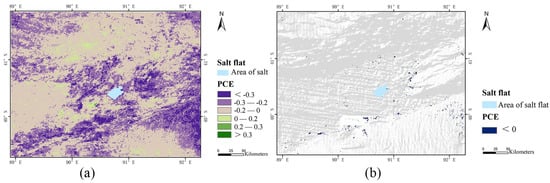 As shown in Figure 8, the mitigation of drought conditions in the surrounding areas by the salt flats is mainly concentrated in the northeastern region. The land use types in the region of no change are mainly saline and sandy with the land use types in the region of no significant increase mainly Gobi and bare rock. Whether the impact of the salt flats on the climate of the surrounding region is related to the land use types needs further consideration.