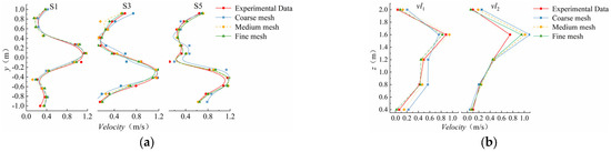 Table 3 demonstrated that the largest discrepancies occurred at Vl1 and Vl2, which correspond to the vertical slot region where the flow structure is highly complex. The maximum error was 5.63%, which indicated that the simulation effectively captured the flow characteristics of the VSF.