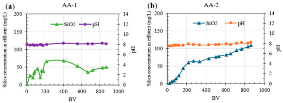 Column operation for silica removal. (a) Results for AA-1; (b) results for AA-2.
