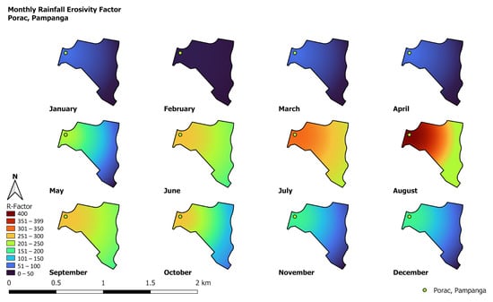 Recent studies conducted in the Philippines applied soil loss models that made use of the R-factor to address erosion risk within their study areas. Delgado and Canters [] used RUSLE and WaTEM/SEDEM to study the effects of agroforestry and traditional monocropping systems on the spatial patterns of soil erosion risk in three Claveria catchment areas. The results of the model show that soil erosion risk patterns vary greatly throughout space, with larger risks on slopes greater than 8% on non-agroforestry land. Similarly, Schmitt [] developed a model for Negros Island based on RUSLE and includes significant improvements such as the movement of eroded soil across the landscape. According to the model, streams will lose 2.7 million cubic meters of sediment per year, rendering more than 416,000 acres of agricultural land unproductive by 2050. These studies present the importance of reliable soil loss modeling on the accuracy of prediction related to soil erosion risk.
