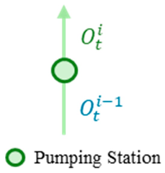 Based on the water balance principle, the flow process of a single pumping station is modeled as follows: