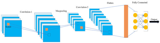 Convolutional Neural Networks (CNNs) are a widely used network architecture for processing image data, holding a pivotal position in the realm of computer vision. The fundamental structure of a CNN consists of an input layer, convolutional layers, pooling layers, fully connected layers, and an output layer, as shown in Figure 2. Due to the characteristics of sparse connections, weight sharing, and pooling operations, CNNs exhibit a remarkable capacity for representation with comparatively fewer layers [25]. The introduction of convolutional kernels reduces parameter connections and mitigates the risk of overfitting while allowing for parameter sharing. The pooling operation serves as a secondary mechanism for feature extraction, thereby decreasing computational demands. This paper utilizes CNNs to extract features from the water inrush data of underlying strata.