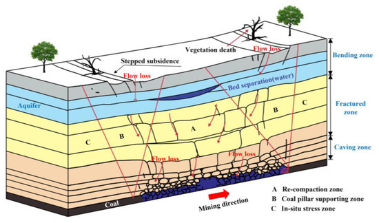 - Teng, Y.; Yi, S.; Zhu, W.; Jing, S. Development Patterns of Fractured Water-Conducting Zones under Fully Mechanized Mining in Wet-Collapsible Loess Area. Water 2022, 15, 22. [Google Scholar] [CrossRef]