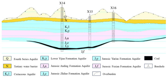Hydrogeological section of the Yonglong mining area.