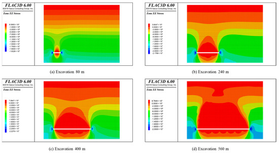 Cloud diagram of vertical stress of overlying strata.