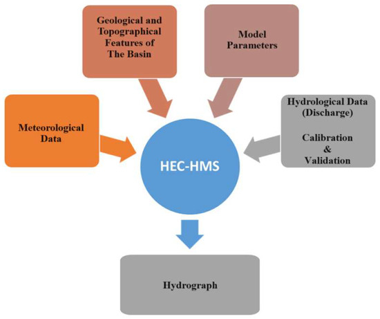 With the HEC-HMS model, hydrological calculations are defined within an interrelated model network data structure. The calculations are made from upstream to downstream. The HEC-HMS model components are as follows: