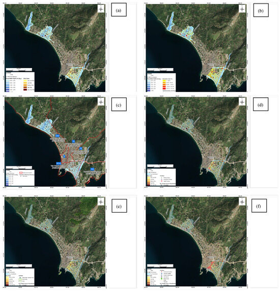 Balıkesir Province Erdek District Center (Western Part) flood risk map (a), Economic damage map (b), Affected population map (c), Strategic facilities map (d), Strategic facilities map (e), Economic activity areas map (f) (Q500).