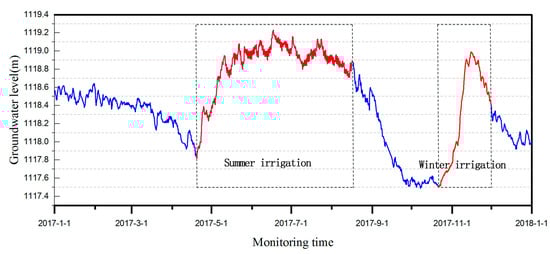 Groundwater level variation in monitoring point Y36 in 2017. The location of Y36 is shown in Figure 1.