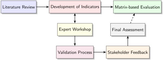 The methodology section outlines the structured approach used to ensure the reliability and objectivity of the analysis. The study uses a matrix-based evaluation framework that integrates key indicators such as applicability, environmental impact, scalability, and economic viability. Figure 1 illustrates the structured framework applied in this study. The literature review involved screening and selecting studies on non-conventional water technologies and country-specific water management issues. Key insights from this phase informed the development of a set of indicators essential for the technology selection process. These indicators were further refined and validated through an expert workshop involving relevant stakeholders. The outcomes contributed to a matrix-based evaluation, enabling a systematic assessment of the technologies. The process also incorporated subsequent validation steps and stakeholder feedback, culminating in a final assessment to ensure robustness and relevance.